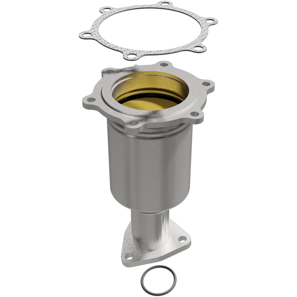 MagnaFlow direct-fit catalytic converters are designed for easy bolt-on installation for the professional installer. Welding, cutting, and tube-bending equipment are not required. These cats feature a ribbed body that minimizes expansion and distortion when the converters heat up. The ribs form a channel that protects the cushioning mat from direct exposure to exhaust gases, and they hold the ceramic catalyst in proper alignment. MagnaFlow converters use a monolithic honeycomb catalyst; the ceramic coating is designed for maximum flow and surface area, and the coating method is strictly controlled to maintain exact specifications. Improper coating could result in flow restrictions or an emissions test failure. These converters are designed to exact OE specifications and are available for the most popular vehicle makes and models.Brand: MagnaFlow