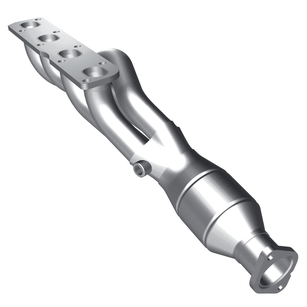 MagnaFlow direct-fit catalytic converters are designed for easy bolt-on installation for the professional installer. Welding, cutting, and tube-bending equipment are not required. These cats feature a ribbed body that minimizes expansion and distortion when the converters heat up. The ribs form a channel that protects the cushioning mat from direct exposure to exhaust gases, and they hold the ceramic catalyst in proper alignment. MagnaFlow converters use a monolithic honeycomb catalyst; the ceramic coating is designed for maximum flow and surface area, and the coating method is strictly controlled to maintain exact specifications. Improper coating could result in flow restrictions or an emissions test failure. These converters are designed to exact OE specifications and are available for the most popular vehicle makes and models.Brand: MagnaFlow