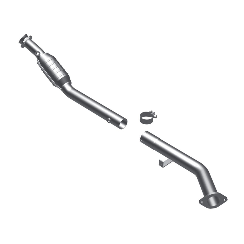 MagnaFlow direct-fit catalytic converters are designed for easy bolt-on installation for the professional installer. Welding, cutting, and tube-bending equipment are not required. These cats feature a ribbed body that minimizes expansion and distortion when the converters heat up. The ribs form a channel that protects the cushioning mat from direct exposure to exhaust gases, and they hold the ceramic catalyst in proper alignment. MagnaFlow converters use a monolithic honeycomb catalyst; the ceramic coating is designed for maximum flow and surface area, and the coating method is strictly controlled to maintain exact specifications. Improper coating could result in flow restrictions or an emissions test failure. These converters are designed to exact OE specifications and are available for the most popular vehicle makes and models.Brand: MagnaFlow