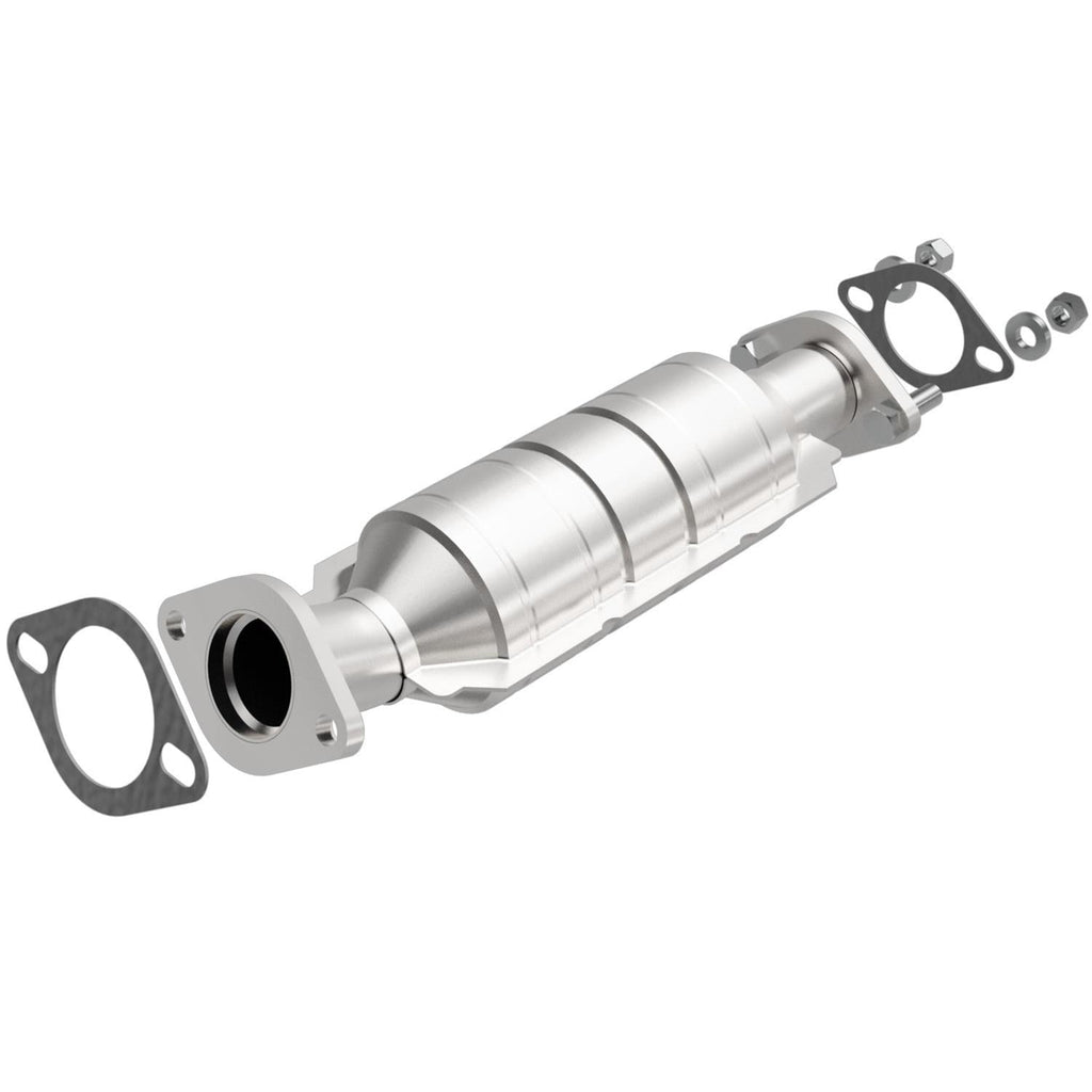MagnaFlow direct-fit catalytic converters are designed for easy bolt-on installation for the professional installer. Welding, cutting, and tube-bending equipment are not required. These cats feature a ribbed body that minimizes expansion and distortion when the converters heat up. The ribs form a channel that protects the cushioning mat from direct exposure to exhaust gases, and they hold the ceramic catalyst in proper alignment. MagnaFlow converters use a monolithic honeycomb catalyst; the ceramic coating is designed for maximum flow and surface area, and the coating method is strictly controlled to maintain exact specifications. Improper coating could result in flow restrictions or an emissions test failure. These converters are designed to exact OE specifications and are available for the most popular vehicle makes and models.Brand: MagnaFlow