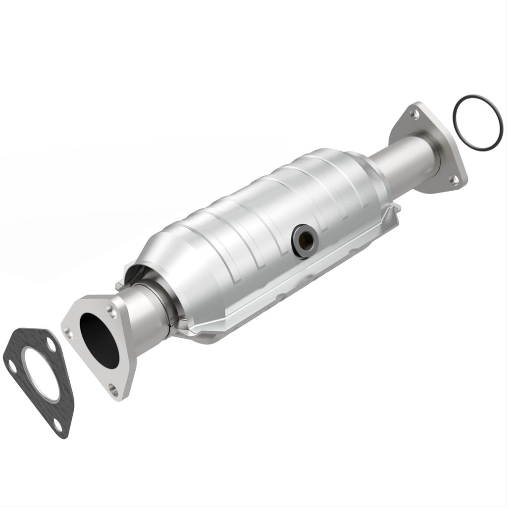 MagnaFlow direct-fit catalytic converters are designed for easy bolt-on installation for the professional installer. Welding, cutting, and tube-bending equipment are not required. These cats feature a ribbed body that minimizes expansion and distortion when the converters heat up. The ribs form a channel that protects the cushioning mat from direct exposure to exhaust gases, and they hold the ceramic catalyst in proper alignment. MagnaFlow converters use a monolithic honeycomb catalyst; the ceramic coating is designed for maximum flow and surface area, and the coating method is strictly controlled to maintain exact specifications. Improper coating could result in flow restrictions or an emissions test failure. These converters are designed to exact OE specifications and are available for the most popular vehicle makes and models.Brand: MagnaFlow