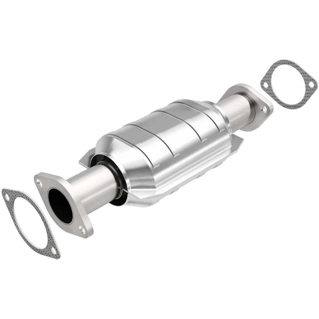 MagnaFlow direct-fit catalytic converters are designed for easy bolt-on installation for the professional installer. Welding, cutting, and tube-bending equipment are not required. These cats feature a ribbed body that minimizes expansion and distortion when the converters heat up. The ribs form a channel that protects the cushioning mat from direct exposure to exhaust gases, and they hold the ceramic catalyst in proper alignment. MagnaFlow converters use a monolithic honeycomb catalyst; the ceramic coating is designed for maximum flow and surface area, and the coating method is strictly controlled to maintain exact specifications. Improper coating could result in flow restrictions or an emissions test failure. These converters are designed to exact OE specifications and are available for the most popular vehicle makes and models.Brand: MagnaFlow