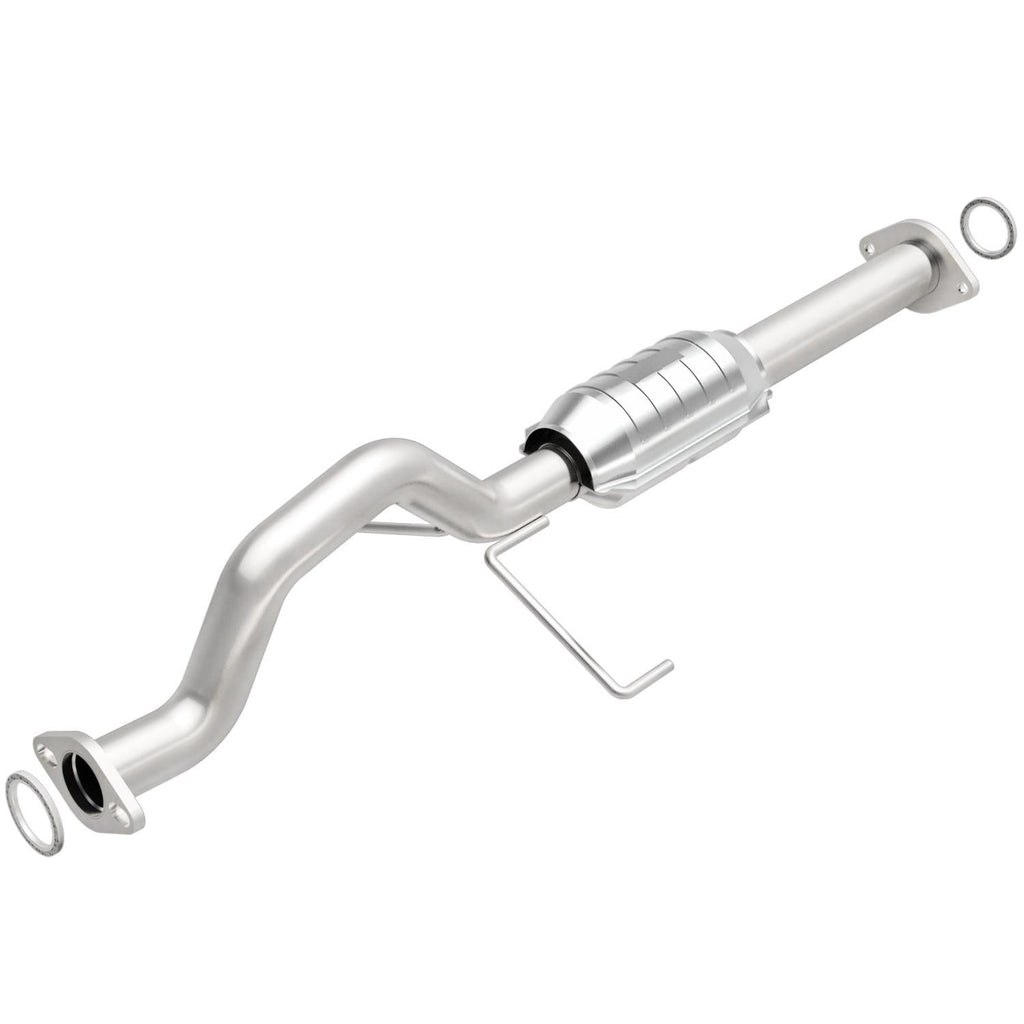 MagnaFlow direct-fit catalytic converters are designed for easy bolt-on installation for the professional installer. Welding, cutting, and tube-bending equipment are not required. These cats feature a ribbed body that minimizes expansion and distortion when the converters heat up. The ribs form a channel that protects the cushioning mat from direct exposure to exhaust gases, and they hold the ceramic catalyst in proper alignment. MagnaFlow converters use a monolithic honeycomb catalyst; the ceramic coating is designed for maximum flow and surface area, and the coating method is strictly controlled to maintain exact specifications. Improper coating could result in flow restrictions or an emissions test failure. These converters are designed to exact OE specifications and are available for the most popular vehicle makes and models.Brand: MagnaFlow