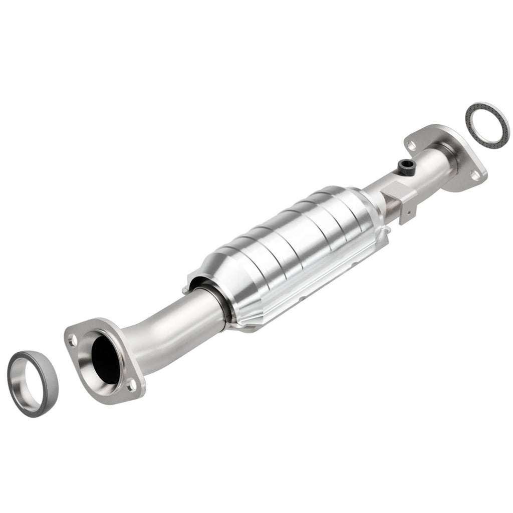 MagnaFlow direct-fit catalytic converters are designed for easy bolt-on installation for the professional installer. Welding, cutting, and tube-bending equipment are not required. These cats feature a ribbed body that minimizes expansion and distortion when the converters heat up. The ribs form a channel that protects the cushioning mat from direct exposure to exhaust gases, and they hold the ceramic catalyst in proper alignment. MagnaFlow converters use a monolithic honeycomb catalyst; the ceramic coating is designed for maximum flow and surface area, and the coating method is strictly controlled to maintain exact specifications. Improper coating could result in flow restrictions or an emissions test failure. These converters are designed to exact OE specifications and are available for the most popular vehicle makes and models.Brand: MagnaFlow