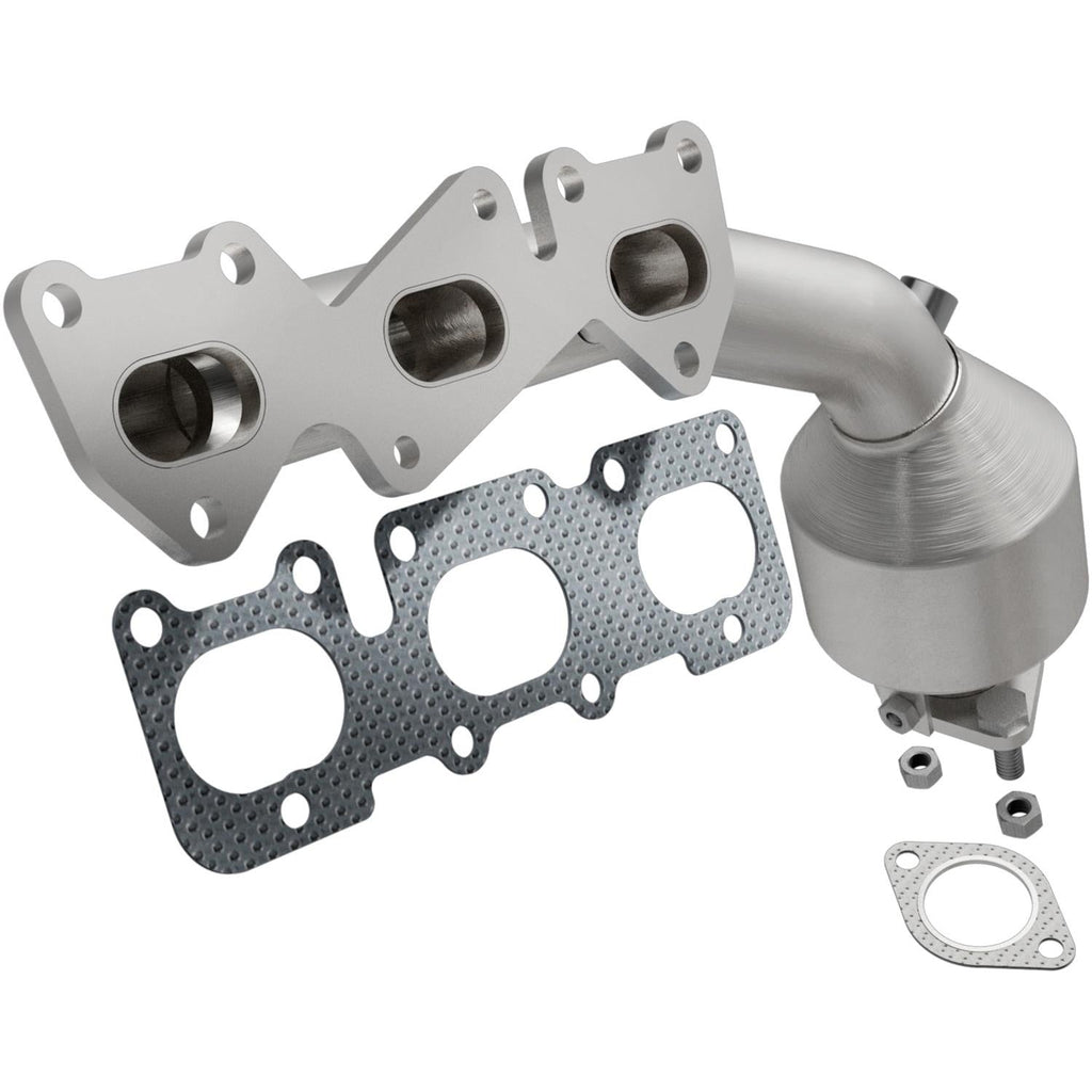 MagnaFlow direct-fit catalytic converters are designed for easy bolt-on installation for the professional installer. Welding, cutting, and tube-bending equipment are not required. These cats feature a ribbed body that minimizes expansion and distortion when the converters heat up. The ribs form a channel that protects the cushioning mat from direct exposure to exhaust gases, and they hold the ceramic catalyst in proper alignment. MagnaFlow converters use a monolithic honeycomb catalyst; the ceramic coating is designed for maximum flow and surface area, and the coating method is strictly controlled to maintain exact specifications. Improper coating could result in flow restrictions or an emissions test failure. These converters are designed to exact OE specifications and are available for the most popular vehicle makes and models.Brand: MagnaFlow