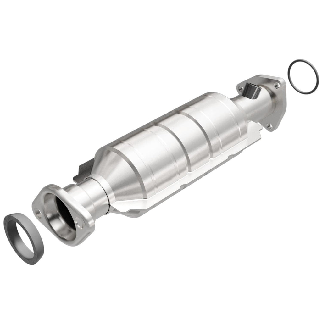 MagnaFlow direct-fit catalytic converters are designed for easy bolt-on installation for the professional installer. Welding, cutting, and tube-bending equipment are not required. These cats feature a ribbed body that minimizes expansion and distortion when the converters heat up. The ribs form a channel that protects the cushioning mat from direct exposure to exhaust gases, and they hold the ceramic catalyst in proper alignment. MagnaFlow converters use a monolithic honeycomb catalyst; the ceramic coating is designed for maximum flow and surface area, and the coating method is strictly controlled to maintain exact specifications. Improper coating could result in flow restrictions or an emissions test failure. These converters are designed to exact OE specifications and are available for the most popular vehicle makes and models.Brand: MagnaFlow