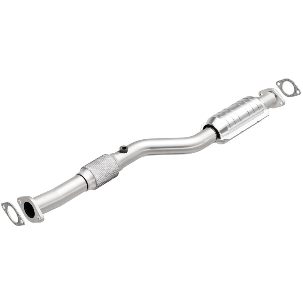 MagnaFlow direct-fit catalytic converters are designed for easy bolt-on installation for the professional installer. Welding, cutting, and tube-bending equipment are not required. These cats feature a ribbed body that minimizes expansion and distortion when the converters heat up. The ribs form a channel that protects the cushioning mat from direct exposure to exhaust gases, and they hold the ceramic catalyst in proper alignment. MagnaFlow converters use a monolithic honeycomb catalyst; the ceramic coating is designed for maximum flow and surface area, and the coating method is strictly controlled to maintain exact specifications. Improper coating could result in flow restrictions or an emissions test failure. These converters are designed to exact OE specifications and are available for the most popular vehicle makes and models.Brand: MagnaFlow