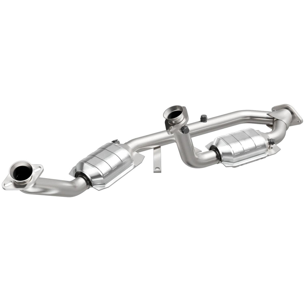 MagnaFlow direct-fit catalytic converters are designed for easy bolt-on installation for the professional installer. Welding, cutting, and tube-bending equipment are not required. These cats feature a ribbed body that minimizes expansion and distortion when the converters heat up. The ribs form a channel that protects the cushioning mat from direct exposure to exhaust gases, and they hold the ceramic catalyst in proper alignment. MagnaFlow converters use a monolithic honeycomb catalyst; the ceramic coating is designed for maximum flow and surface area, and the coating method is strictly controlled to maintain exact specifications. Improper coating could result in flow restrictions or an emissions test failure. These converters are designed to exact OE specifications and are available for the most popular vehicle makes and models.Brand: MagnaFlow