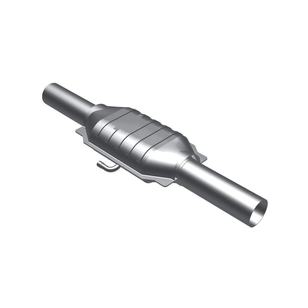 MagnaFlow direct-fit catalytic converters are designed for easy bolt-on installation for the professional installer. Welding, cutting, and tube-bending equipment are not required. These cats feature a ribbed body that minimizes expansion and distortion when the converters heat up. The ribs form a channel that protects the cushioning mat from direct exposure to exhaust gases, and they hold the ceramic catalyst in proper alignment. MagnaFlow converters use a monolithic honeycomb catalyst; the ceramic coating is designed for maximum flow and surface area, and the coating method is strictly controlled to maintain exact specifications. Improper coating could result in flow restrictions or an emissions test failure. These converters are designed to exact OE specifications and are available for the most popular vehicle makes and models.Brand: MagnaFlow