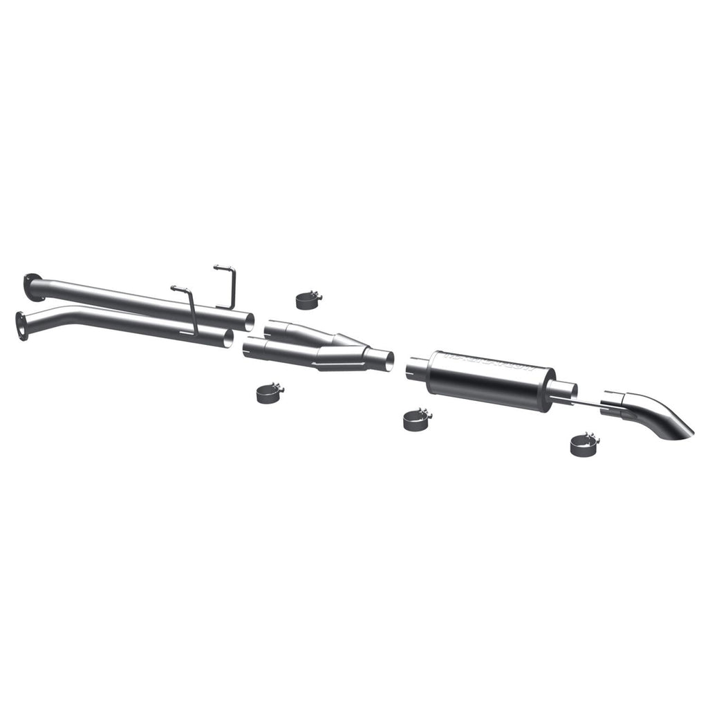MagnaFlow Off-Road Pro Series turndown systems provide an aggressive exhaust note and allows for use on vehicles with highly modified suspension systems. They provide the versatility to accommodate nearly every configuration, including lifted, lowered, air bagged, and long travel. Additionally, they're engineered for maximum power and minimal weight. These systems also eliminate the need for custom fabrication with true bolt-on fitment. Increase performance and turns heads with MagnaFlow Off-Road Pro Series turndown systems.Brand: MagnaFlow