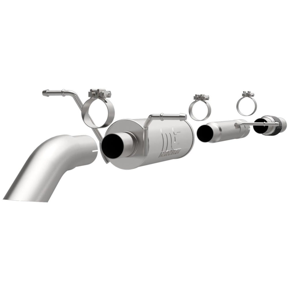 MagnaFlow Off-Road Pro Series turndown systems provide an aggressive exhaust note and allows for use on vehicles with highly modified suspension systems. They provide the versatility to accommodate nearly every configuration, including lifted, lowered, air bagged, and long travel. Additionally, they're engineered for maximum power and minimal weight. These systems also eliminate the need for custom fabrication with true bolt-on fitment. Increase performance and turns heads with MagnaFlow Off-Road Pro Series turndown systems.Brand: MagnaFlow