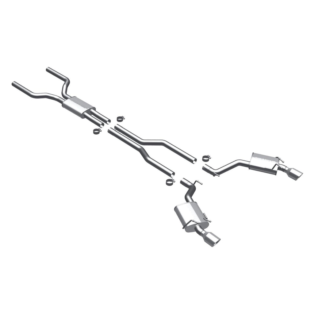 MagnaFlow Street Series performance exhaust systems deliver the smooth, deep sound you want—and the wide-open performance power you need! They feature straight-through flow designs for the ultimate in unrestricted horsepower and torque, while maintaining exhaust efficiency. These kits are an engineered balance of interior and exterior noise levels and are tested against SAE j1169 standards. Street Series components are built with 409 stainless steel and all mandrel-bent tubing. They're available in numerous configurations, including cat-back, rear axle-back, crossmember-back, and rear section; single, dual, tri, or quad turbo mufflers; and several outlet and tip options. Order the MagnaFlow Street Series performance exhaust tailored for your specific make and model. The systems carry a lifetime construction warranty.Brand: MagnaFlow