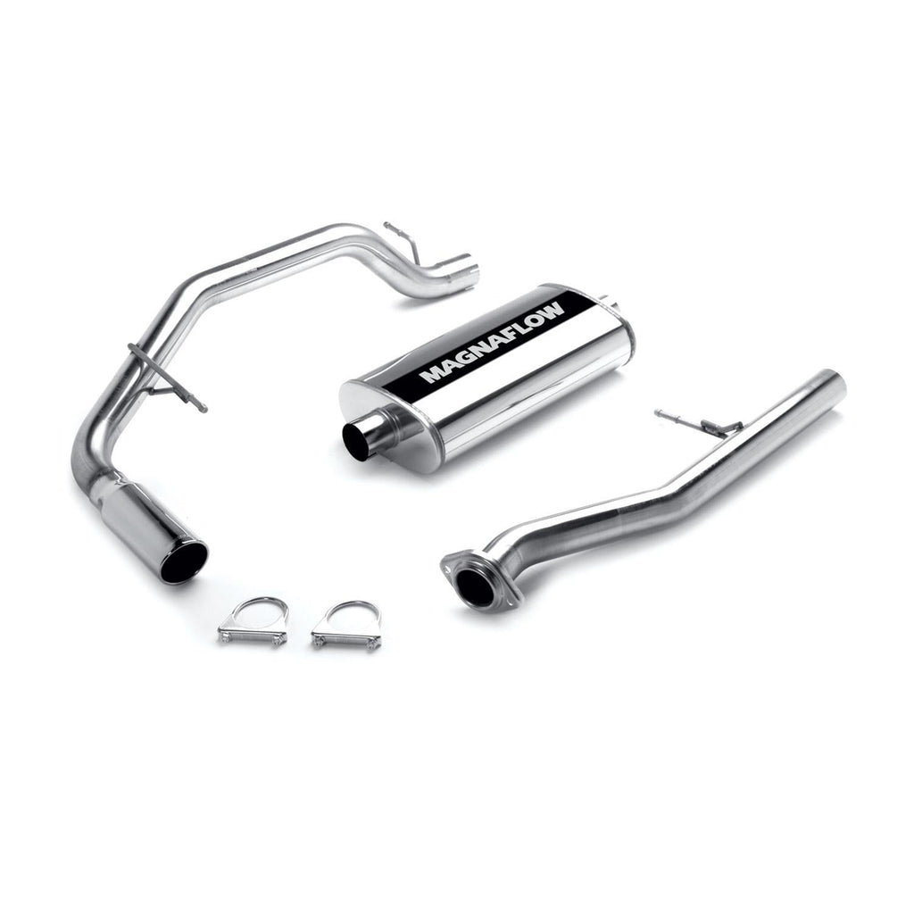 MagnaFlow Street Series performance exhaust systems deliver the smooth, deep sound you want—and the wide-open performance power you need! They feature straight-through flow designs for the ultimate in unrestricted horsepower and torque, while maintaining exhaust efficiency. These kits are an engineered balance of interior and exterior noise levels and are tested against SAE j1169 standards. Street Series components are built with 409 stainless steel and all mandrel-bent tubing. They're available in numerous configurations, including cat-back, rear axle-back, crossmember-back, and rear section; single, dual, tri, or quad turbo mufflers; and several outlet and tip options. Order the MagnaFlow Street Series performance exhaust tailored for your specific make and model. The systems carry a lifetime construction warranty.Brand: MagnaFlow