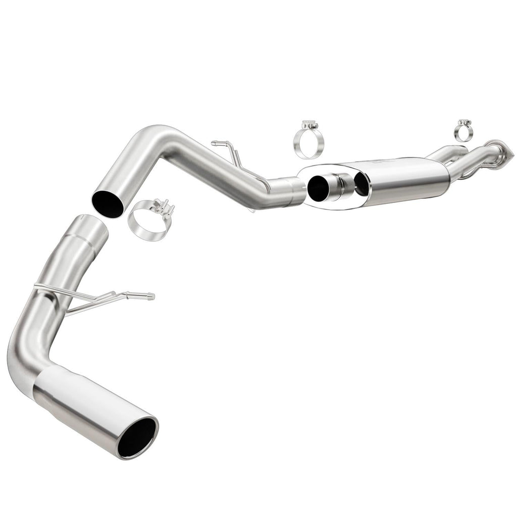 MagnaFlow Street Series performance exhaust systems deliver the smooth, deep sound you want—and the wide-open performance power you need! They feature straight-through flow designs for the ultimate in unrestricted horsepower and torque, while maintaining exhaust efficiency. These kits are an engineered balance of interior and exterior noise levels and are tested against SAE j1169 standards. Street Series components are built with 409 stainless steel and all mandrel-bent tubing. They're available in numerous configurations, including cat-back, rear axle-back, crossmember-back, and rear section; single, dual, tri, or quad turbo mufflers; and several outlet and tip options. Order the MagnaFlow Street Series performance exhaust tailored for your specific make and model. The systems carry a lifetime construction warranty.Brand: MagnaFlow