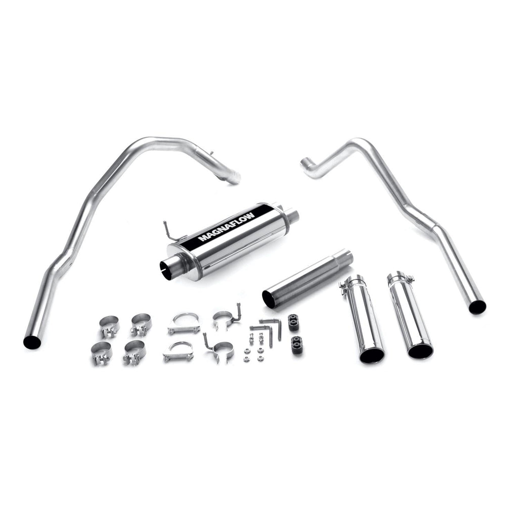 MagnaFlow Street Series performance exhaust systems deliver the smooth, deep sound you want—and the wide-open performance power you need! They feature straight-through flow designs for the ultimate in unrestricted horsepower and torque, while maintaining exhaust efficiency. These kits are an engineered balance of interior and exterior noise levels and are tested against SAE j1169 standards. Street Series components are built with 409 stainless steel and all mandrel-bent tubing. They're available in numerous configurations, including cat-back, rear axle-back, crossmember-back, and rear section; single, dual, tri, or quad turbo mufflers; and several outlet and tip options. Order the MagnaFlow Street Series performance exhaust tailored for your specific make and model. The systems carry a lifetime construction warranty.Brand: MagnaFlow