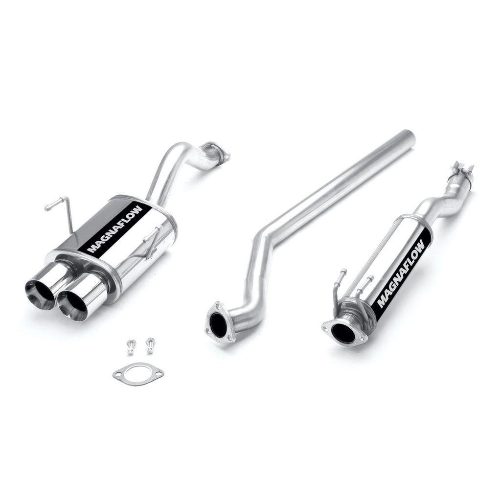 MagnaFlow Street Series performance exhaust systems deliver the smooth, deep sound you want—and the wide-open performance power you need! They feature straight-through flow designs for the ultimate in unrestricted horsepower and torque, while maintaining exhaust efficiency. These kits are an engineered balance of interior and exterior noise levels and are tested against SAE j1169 standards. Street Series components are built with 409 stainless steel and all mandrel-bent tubing. They're available in numerous configurations, including cat-back, rear axle-back, crossmember-back, and rear section; single, dual, tri, or quad turbo mufflers; and several outlet and tip options. Order the MagnaFlow Street Series performance exhaust tailored for your specific make and model. The systems carry a lifetime construction warranty.Brand: MagnaFlow
