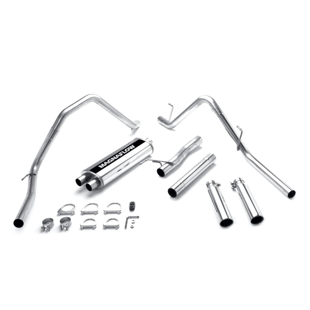 MagnaFlow Street Series performance exhaust systems deliver the smooth, deep sound you want—and the wide-open performance power you need! They feature straight-through flow designs for the ultimate in unrestricted horsepower and torque, while maintaining exhaust efficiency. These kits are an engineered balance of interior and exterior noise levels and are tested against SAE j1169 standards. Street Series components are built with 409 stainless steel and all mandrel-bent tubing. They're available in numerous configurations, including cat-back, rear axle-back, crossmember-back, and rear section; single, dual, tri, or quad turbo mufflers; and several outlet and tip options. Order the MagnaFlow Street Series performance exhaust tailored for your specific make and model. The systems carry a lifetime construction warranty.Brand: MagnaFlow