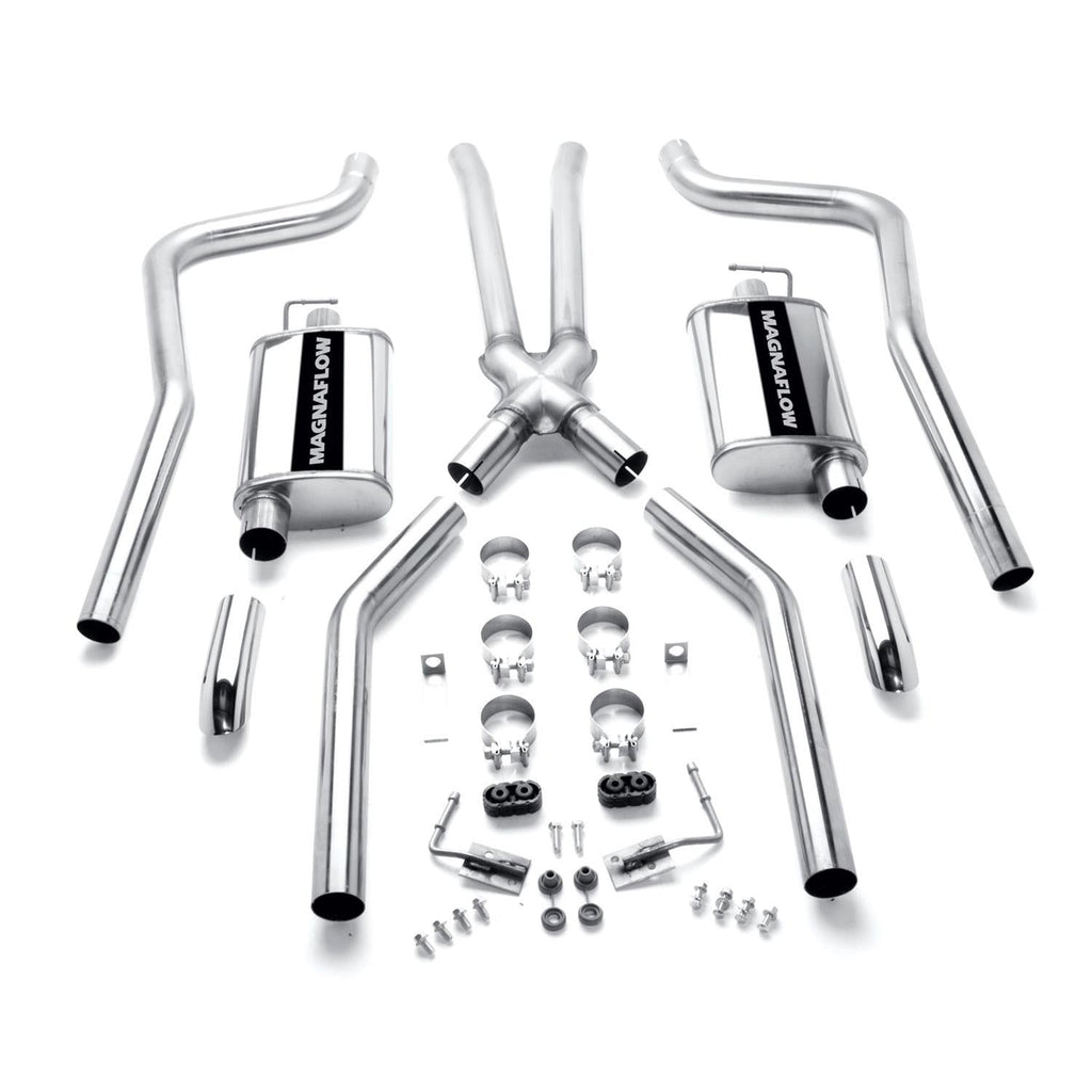 MagnaFlow Street Series performance exhaust systems deliver the smooth, deep sound you want—and the wide-open performance power you need! They feature straight-through flow designs for the ultimate in unrestricted horsepower and torque, while maintaining exhaust efficiency. These kits are an engineered balance of interior and exterior noise levels and are tested against SAE j1169 standards. Street Series components are built with 409 stainless steel and all mandrel-bent tubing. They're available in numerous configurations, including cat-back, rear axle-back, crossmember-back, and rear section; single, dual, tri, or quad turbo mufflers; and several outlet and tip options. Order the MagnaFlow Street Series performance exhaust tailored for your specific make and model. The systems carry a lifetime construction warranty.Brand: MagnaFlow