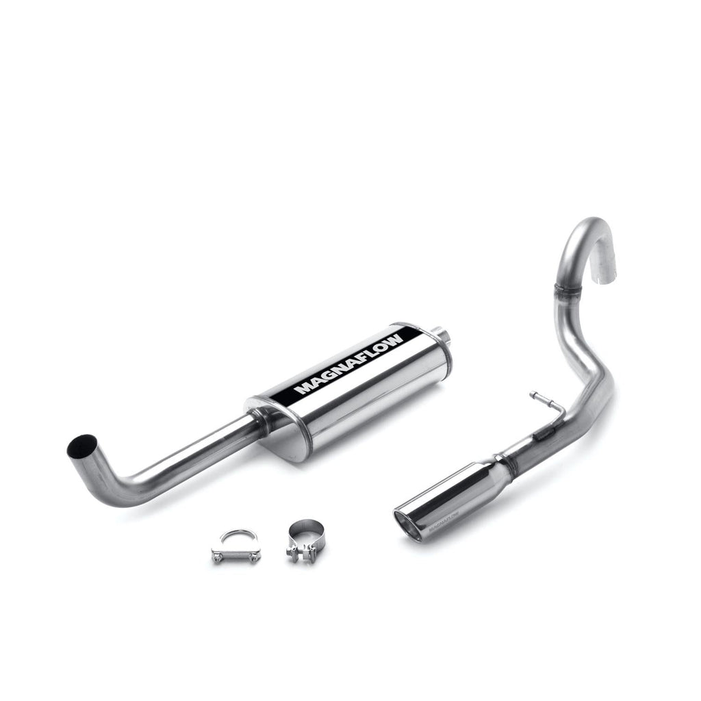 MagnaFlow Street Series performance exhaust systems deliver the smooth, deep sound you want—and the wide-open performance power you need! They feature straight-through flow designs for the ultimate in unrestricted horsepower and torque, while maintaining exhaust efficiency. These kits are an engineered balance of interior and exterior noise levels and are tested against SAE j1169 standards. Street Series components are built with 409 stainless steel and all mandrel-bent tubing. They're available in numerous configurations, including cat-back, rear axle-back, crossmember-back, and rear section; single, dual, tri, or quad turbo mufflers; and several outlet and tip options. Order the MagnaFlow Street Series performance exhaust tailored for your specific make and model. The systems carry a lifetime construction warranty.Brand: MagnaFlow