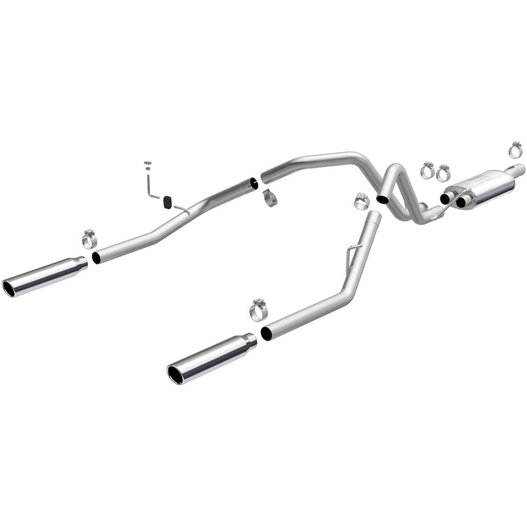 MagnaFlow Street Series performance exhaust systems deliver the smooth, deep sound you want—and the wide-open performance power you need! They feature straight-through flow designs for the ultimate in unrestricted horsepower and torque, while maintaining exhaust efficiency. These kits are an engineered balance of interior and exterior noise levels and are tested against SAE j1169 standards. Street Series components are built with 409 stainless steel and all mandrel-bent tubing. They're available in numerous configurations, including cat-back, rear axle-back, crossmember-back, and rear section; single, dual, tri, or quad turbo mufflers; and several outlet and tip options. Order the MagnaFlow Street Series performance exhaust tailored for your specific make and model. The systems carry a lifetime construction warranty.Brand: MagnaFlow