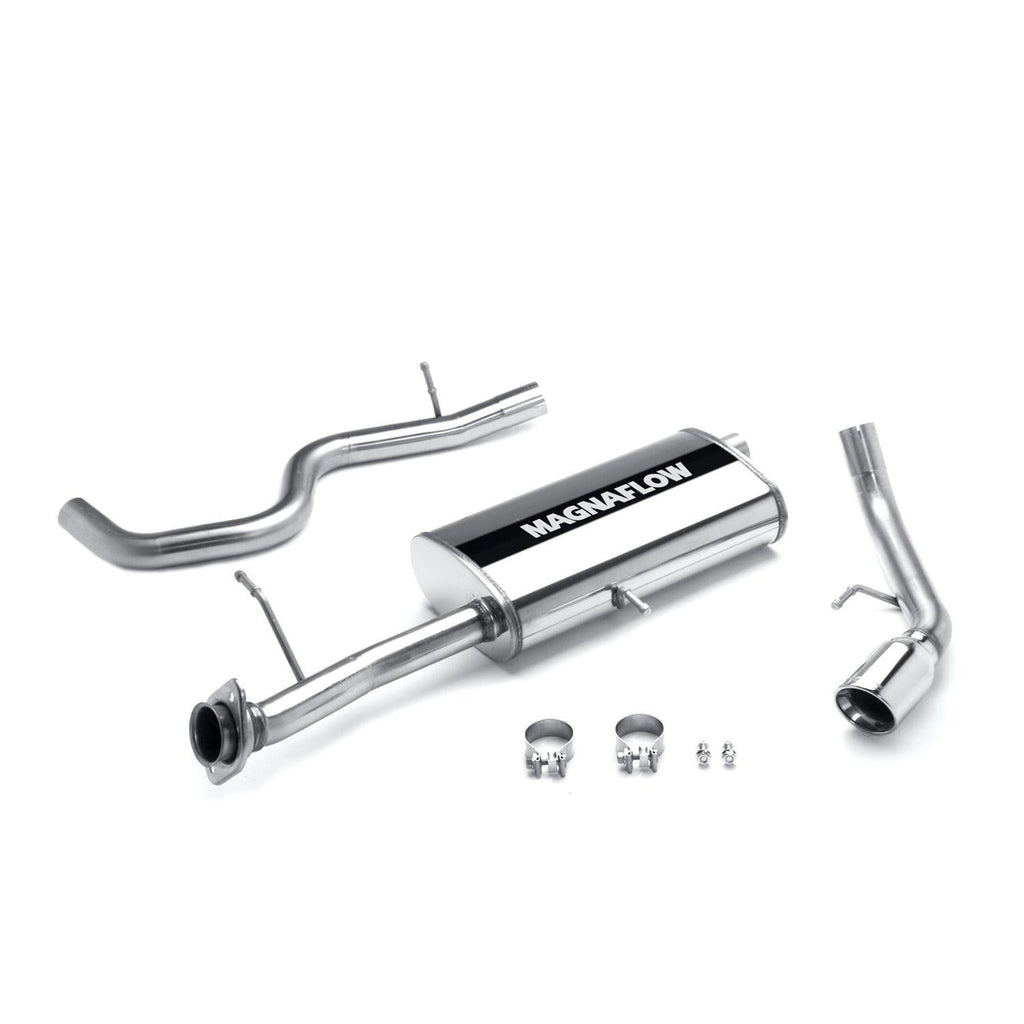 MagnaFlow Street Series performance exhaust systems deliver the smooth, deep sound you want—and the wide-open performance power you need! They feature straight-through flow designs for the ultimate in unrestricted horsepower and torque, while maintaining exhaust efficiency. These kits are an engineered balance of interior and exterior noise levels and are tested against SAE j1169 standards. Street Series components are built with 409 stainless steel and all mandrel-bent tubing. They're available in numerous configurations, including cat-back, rear axle-back, crossmember-back, and rear section; single, dual, tri, or quad turbo mufflers; and several outlet and tip options. Order the MagnaFlow Street Series performance exhaust tailored for your specific make and model. The systems carry a lifetime construction warranty.Brand: MagnaFlow