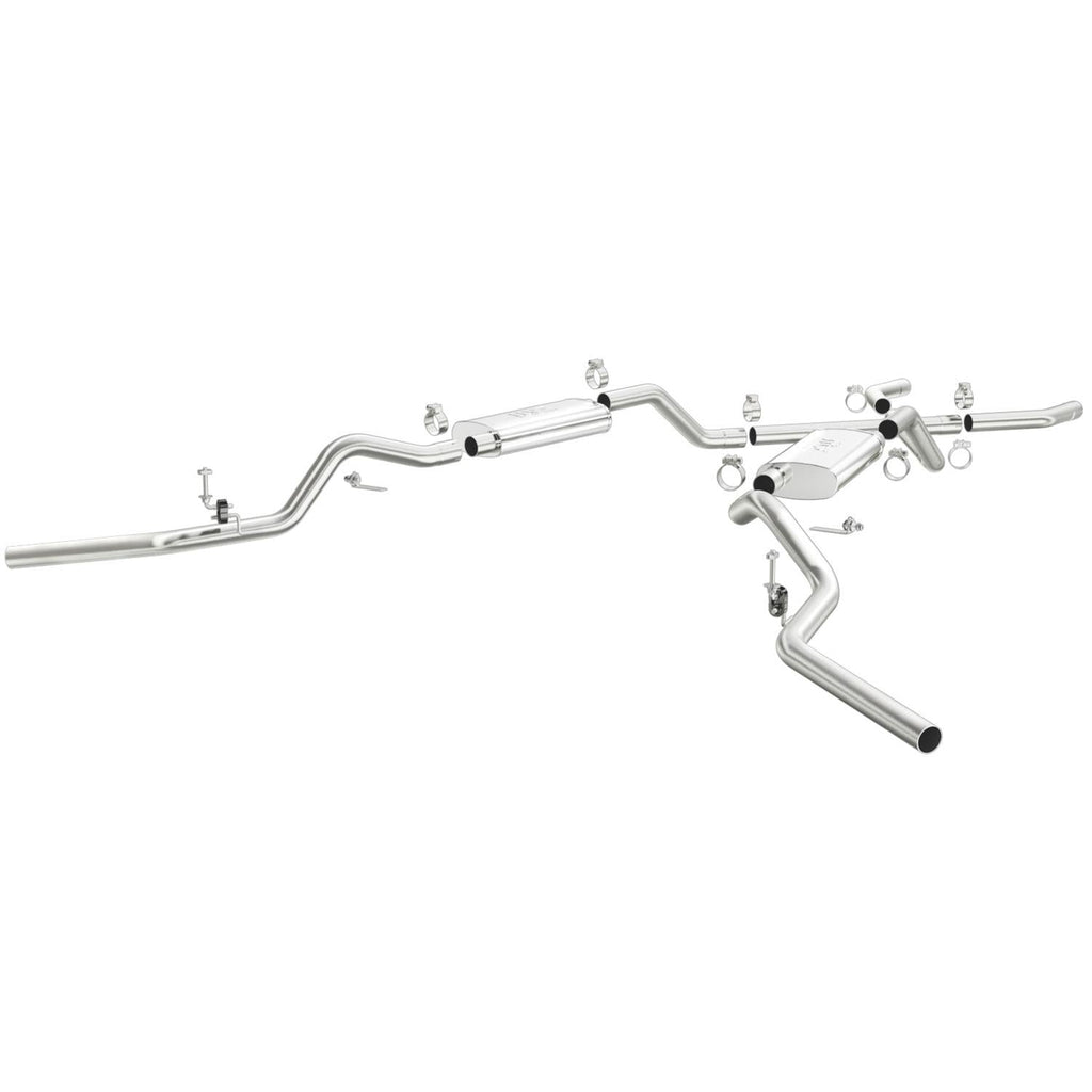 MagnaFlow Street Series performance exhaust systems deliver the smooth, deep sound you want—and the wide-open performance power you need! They feature straight-through flow designs for the ultimate in unrestricted horsepower and torque, while maintaining exhaust efficiency. These kits are an engineered balance of interior and exterior noise levels and are tested against SAE j1169 standards. Street Series components are built with 409 stainless steel and all mandrel-bent tubing. They're available in numerous configurations, including cat-back, rear axle-back, crossmember-back, and rear section; single, dual, tri, or quad turbo mufflers; and several outlet and tip options. Order the MagnaFlow Street Series performance exhaust tailored for your specific make and model. The systems carry a lifetime construction warranty.Brand: MagnaFlow