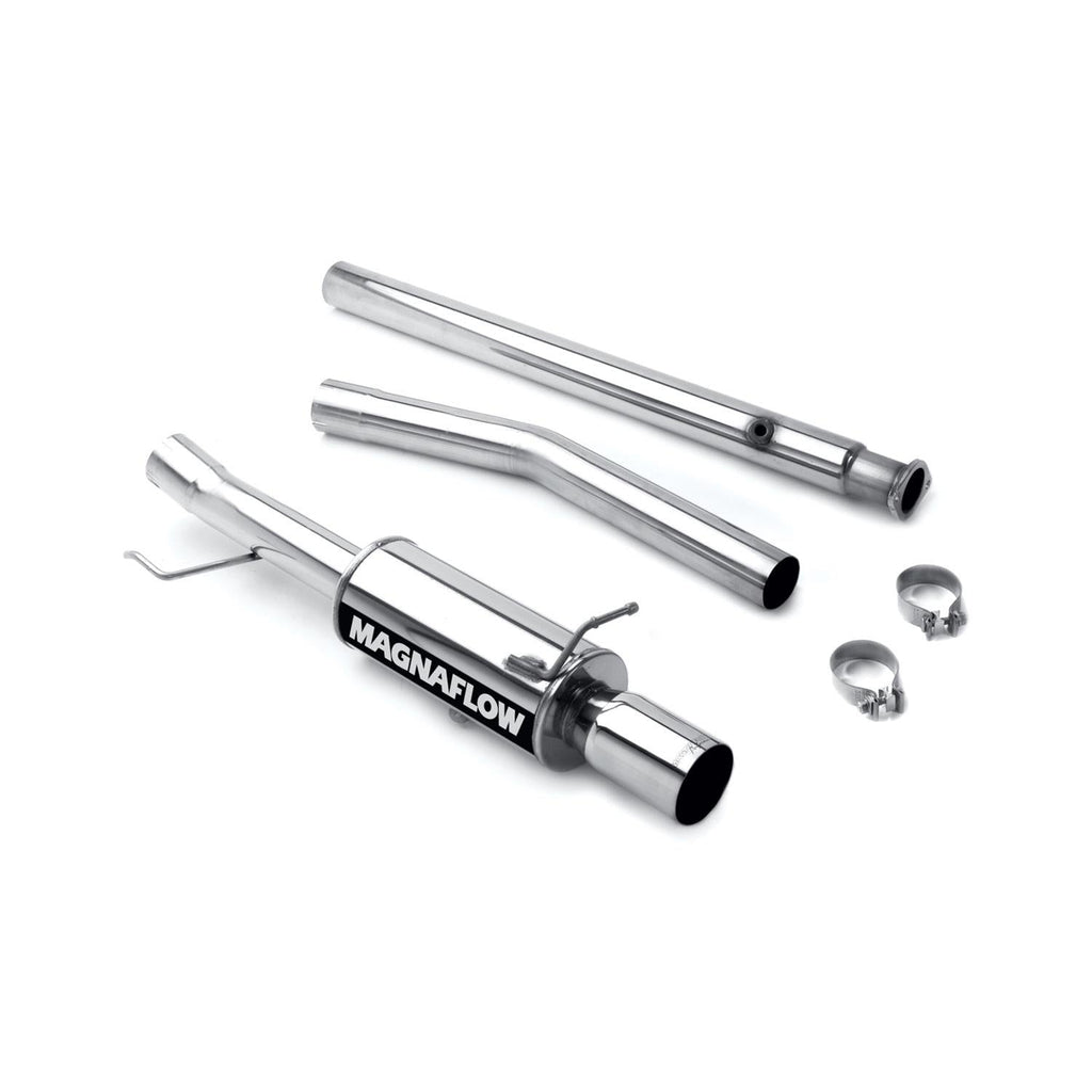 MagnaFlow Street Series performance exhaust systems deliver the smooth, deep sound you want—and the wide-open performance power you need! They feature straight-through flow designs for the ultimate in unrestricted horsepower and torque, while maintaining exhaust efficiency. These kits are an engineered balance of interior and exterior noise levels and are tested against SAE j1169 standards. Street Series components are built with 409 stainless steel and all mandrel-bent tubing. They're available in numerous configurations, including cat-back, rear axle-back, crossmember-back, and rear section; single, dual, tri, or quad turbo mufflers; and several outlet and tip options. Order the MagnaFlow Street Series performance exhaust tailored for your specific make and model. The systems carry a lifetime construction warranty.Brand: MagnaFlow