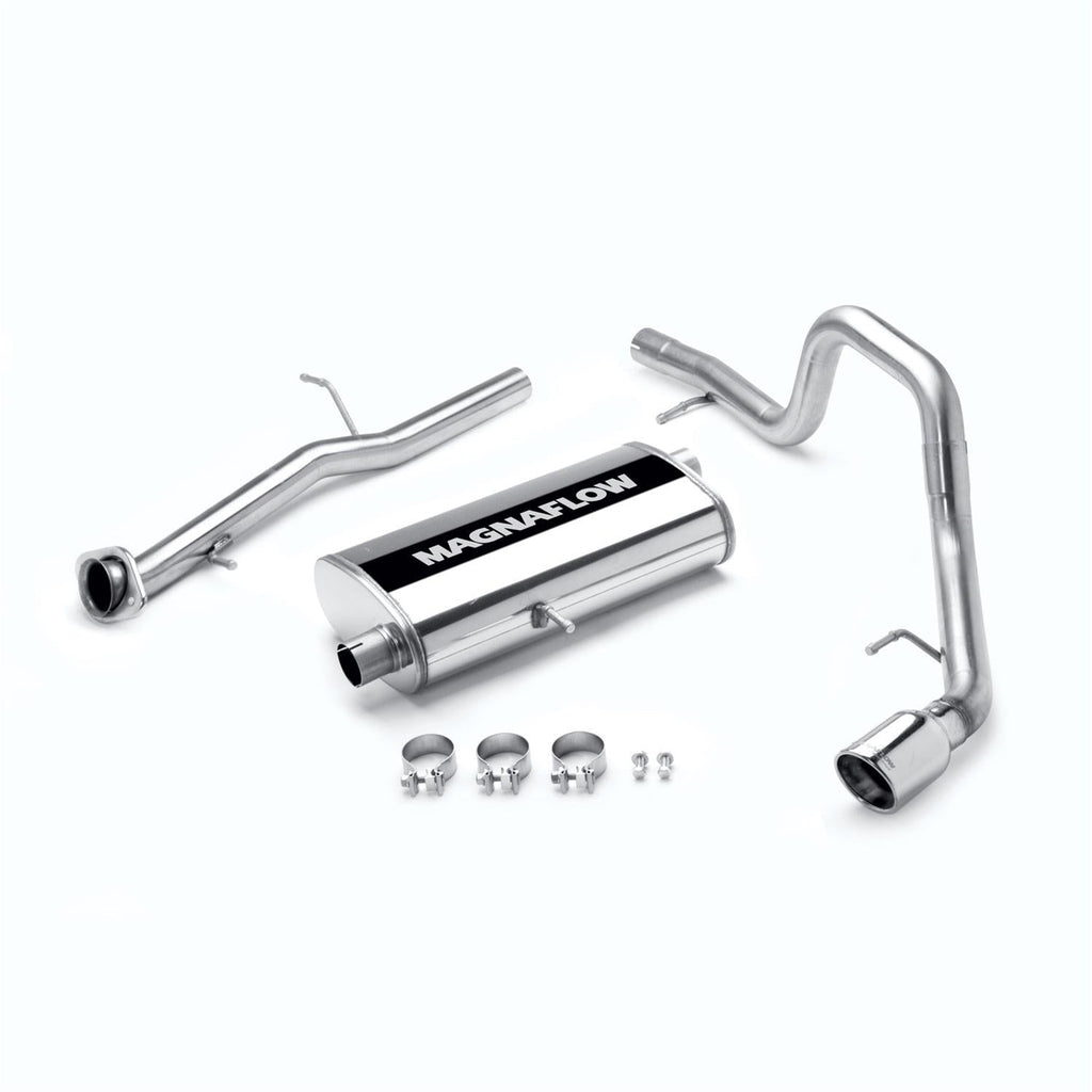 MagnaFlow Street Series performance exhaust systems deliver the smooth, deep sound you want—and the wide-open performance power you need! They feature straight-through flow designs for the ultimate in unrestricted horsepower and torque, while maintaining exhaust efficiency. These kits are an engineered balance of interior and exterior noise levels and are tested against SAE j1169 standards. Street Series components are built with 409 stainless steel and all mandrel-bent tubing. They're available in numerous configurations, including cat-back, rear axle-back, crossmember-back, and rear section; single, dual, tri, or quad turbo mufflers; and several outlet and tip options. Order the MagnaFlow Street Series performance exhaust tailored for your specific make and model. The systems carry a lifetime construction warranty.Brand: MagnaFlow