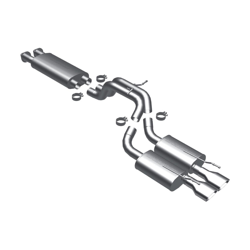 MagnaFlow Street Series performance exhaust systems deliver the smooth, deep sound you want—and the wide-open performance power you need! They feature straight-through flow designs for the ultimate in unrestricted horsepower and torque, while maintaining exhaust efficiency. These kits are an engineered balance of interior and exterior noise levels and are tested against SAE j1169 standards. Street Series components are built with 409 stainless steel and all mandrel-bent tubing. They're available in numerous configurations, including cat-back, rear axle-back, crossmember-back, and rear section; single, dual, tri, or quad turbo mufflers; and several outlet and tip options. Order the MagnaFlow Street Series performance exhaust tailored for your specific make and model. The systems carry a lifetime construction warranty.Brand: MagnaFlow