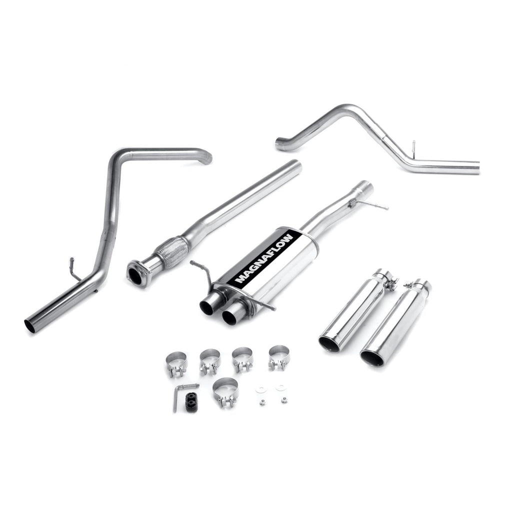MagnaFlow Street Series performance exhaust systems deliver the smooth, deep sound you want—and the wide-open performance power you need! They feature straight-through flow designs for the ultimate in unrestricted horsepower and torque, while maintaining exhaust efficiency. These kits are an engineered balance of interior and exterior noise levels and are tested against SAE j1169 standards. Street Series components are built with 409 stainless steel and all mandrel-bent tubing. They're available in numerous configurations, including cat-back, rear axle-back, crossmember-back, and rear section; single, dual, tri, or quad turbo mufflers; and several outlet and tip options. Order the MagnaFlow Street Series performance exhaust tailored for your specific make and model. The systems carry a lifetime construction warranty.Brand: MagnaFlow