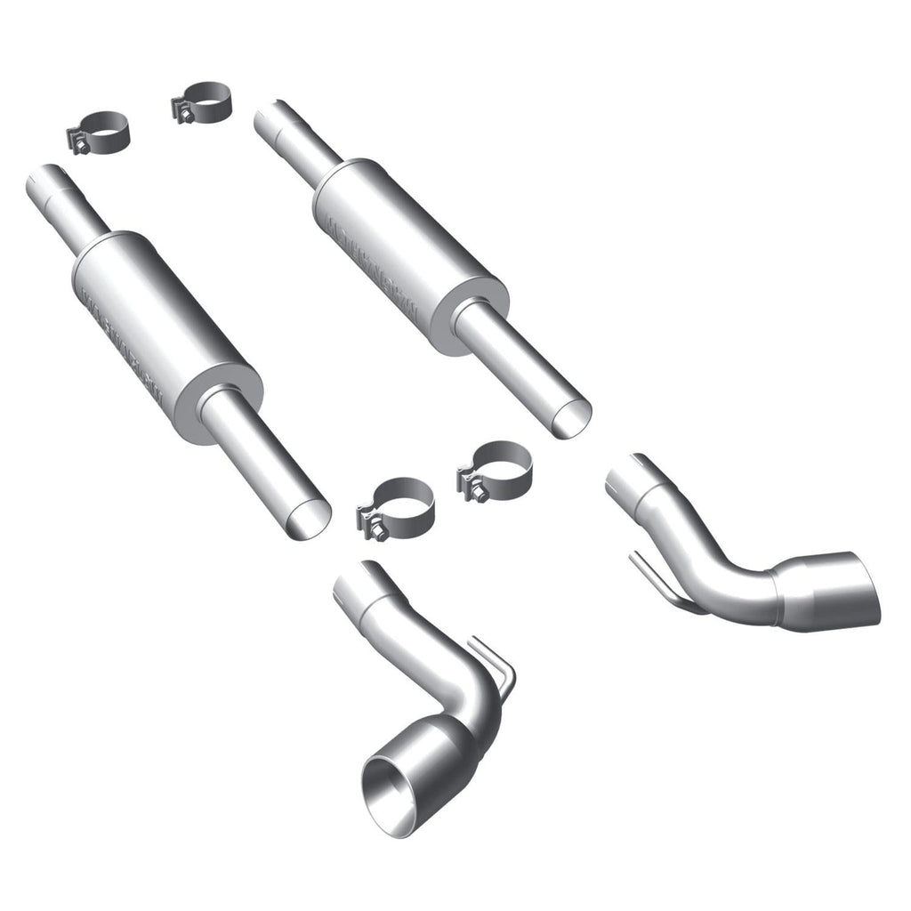MagnaFlow Street Series performance exhaust systems deliver the smooth, deep sound you want—and the wide-open performance power you need! They feature straight-through flow designs for the ultimate in unrestricted horsepower and torque, while maintaining exhaust efficiency. These kits are an engineered balance of interior and exterior noise levels and are tested against SAE j1169 standards. Street Series components are built with 409 stainless steel and all mandrel-bent tubing. They're available in numerous configurations, including cat-back, rear axle-back, crossmember-back, and rear section; single, dual, tri, or quad turbo mufflers; and several outlet and tip options. Order the MagnaFlow Street Series performance exhaust tailored for your specific make and model. The systems carry a lifetime construction warranty.Brand: MagnaFlow