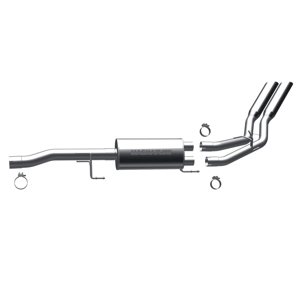 MagnaFlow Street Series performance exhaust systems deliver the smooth, deep sound you want—and the wide-open performance power you need! They feature straight-through flow designs for the ultimate in unrestricted horsepower and torque, while maintaining exhaust efficiency. These kits are an engineered balance of interior and exterior noise levels and are tested against SAE j1169 standards. Street Series components are built with 409 stainless steel and all mandrel-bent tubing. They're available in numerous configurations, including cat-back, rear axle-back, crossmember-back, and rear section; single, dual, tri, or quad turbo mufflers; and several outlet and tip options. Order the MagnaFlow Street Series performance exhaust tailored for your specific make and model. The systems carry a lifetime construction warranty.Brand: MagnaFlow