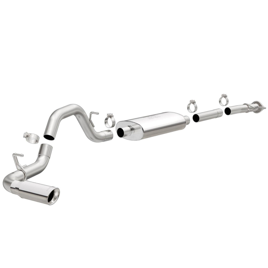 MagnaFlow Street Series performance exhaust systems deliver the smooth, deep sound you want—and the wide-open performance power you need! They feature straight-through flow designs for the ultimate in unrestricted horsepower and torque, while maintaining exhaust efficiency. These kits are an engineered balance of interior and exterior noise levels and are tested against SAE j1169 standards. Street Series components are built with 409 stainless steel and all mandrel-bent tubing. They're available in numerous configurations, including cat-back, rear axle-back, crossmember-back, and rear section; single, dual, tri, or quad turbo mufflers; and several outlet and tip options. Order the MagnaFlow Street Series performance exhaust tailored for your specific make and model. The systems carry a lifetime construction warranty.Brand: MagnaFlow