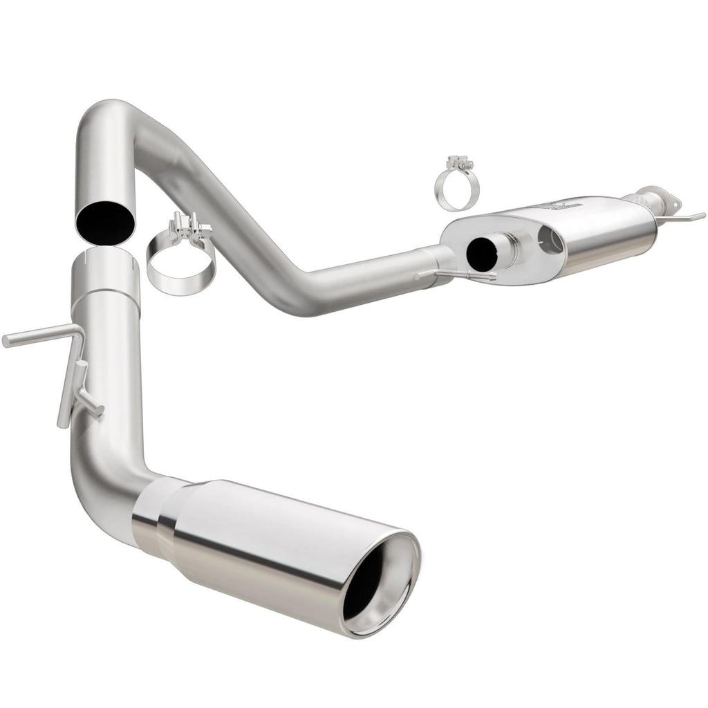MagnaFlow Street Series performance exhaust systems deliver the smooth, deep sound you want—and the wide-open performance power you need! They feature straight-through flow designs for the ultimate in unrestricted horsepower and torque, while maintaining exhaust efficiency. These kits are an engineered balance of interior and exterior noise levels and are tested against SAE j1169 standards. Street Series components are built with 409 stainless steel and all mandrel-bent tubing. They're available in numerous configurations, including cat-back, rear axle-back, crossmember-back, and rear section; single, dual, tri, or quad turbo mufflers; and several outlet and tip options. Order the MagnaFlow Street Series performance exhaust tailored for your specific make and model. The systems carry a lifetime construction warranty.Brand: MagnaFlow