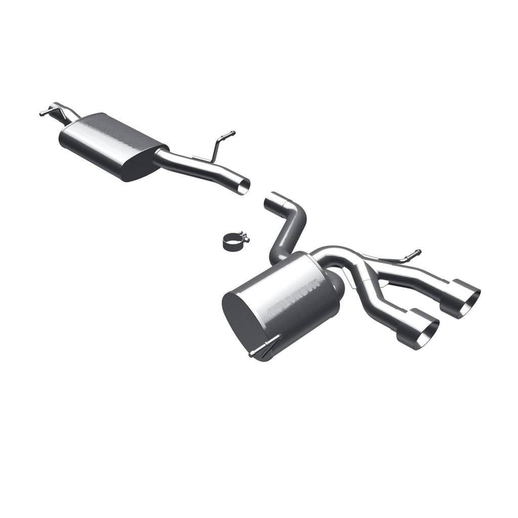 MagnaFlow Touring Series performance exhaust systems are an ideal choice for those seeking increased performance and better economy. Their straight-through flow designs deliver the ultimate in unrestricted horsepower and torque, while maintaining exhaust efficiency. An engineered balance of interior and exterior noise levels, these kits offer the smooth, deep sound you want—and the wide-open power you need! Touring Series systems feature 409 stainless steel components, all mandrel-bent tubing, and a lifetime construction warranty; they're tested against SAE j1169 standards. MagnaFlow Touring Series performance exhausts are available in numerous configurations, including cat-back and rear axle-back; single, dual, tri, or quad mufflers; and several outlet and tip options. Order the model tailored for fitment on your specific vehicle.Brand: MagnaFlow