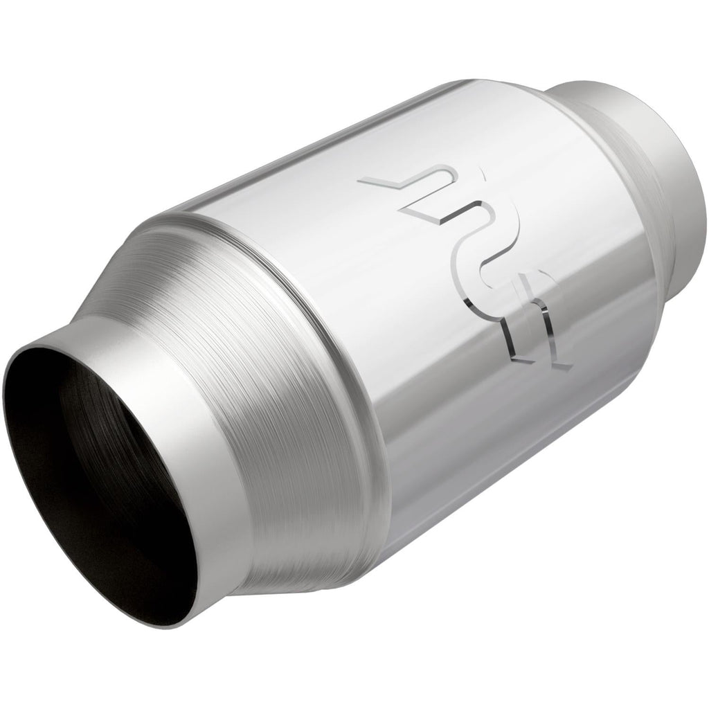 MagnaFlow universal spun catalytic converters utilize the revolutionary new catalyst technology. Using new manufacturing technology, they fabricate each converter body from a single CNC-formed and laser-welded tubular section, which is then spun into a round converter body shape. The MagnaFlow universal spun catalytic converters are literally manufactured around the catalyst, which is securely tucked inside and necks down to thicker gauge material at the inlet/outlet for maximum durability. They are available in different diameter inlets and outlets to match your specific exhaust system. Whether you need centered, offset, or angled converters, MagnaFlow universal spun catalytic converters will fit any application.Brand: MagnaFlow