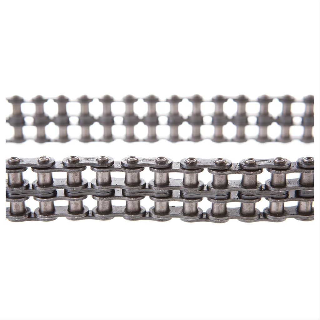 Melling replacement timing chains are available in several styles—single or double roller, link belt, or non-roller—for fitment on countless year/make/model vehicles. A key link in your engine, timing chains synchronize and transfer energy from the crankshaft to the camshaft, controlling when the intake and exhaust valves open. These solid-bushing chains offer a true bearing surface that rolls with the sprockets, eliminating chain stretch. Order the replacement designed for your specific application.Brand: Melling