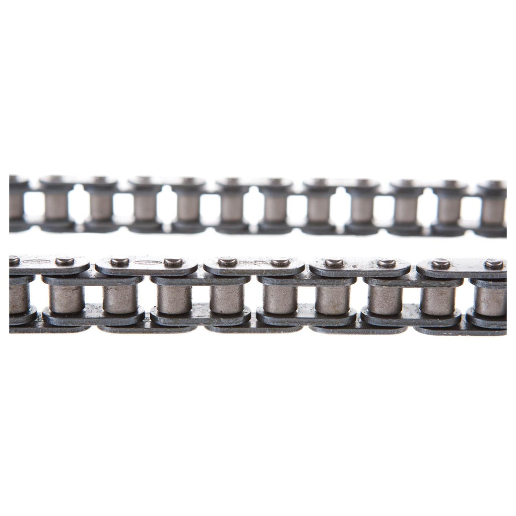 Melling replacement timing chains are available in several styles—single or double roller, link belt, or non-roller—for fitment on countless year/make/model vehicles. A key link in your engine, timing chains synchronize and transfer energy from the crankshaft to the camshaft, controlling when the intake and exhaust valves open. These solid-bushing chains offer a true bearing surface that rolls with the sprockets, eliminating chain stretch. Order the replacement designed for your specific application.Brand: Melling