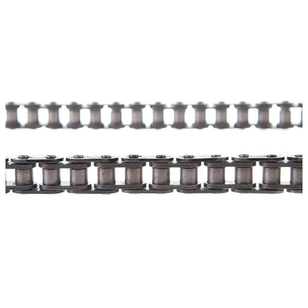 Melling replacement timing chains are available in several styles—single or double roller, link belt, or non-roller—for fitment on countless year/make/model vehicles. A key link in your engine, timing chains synchronize and transfer energy from the crankshaft to the camshaft, controlling when the intake and exhaust valves open. These solid-bushing chains offer a true bearing surface that rolls with the sprockets, eliminating chain stretch. Order the replacement designed for your specific application.Brand: Melling