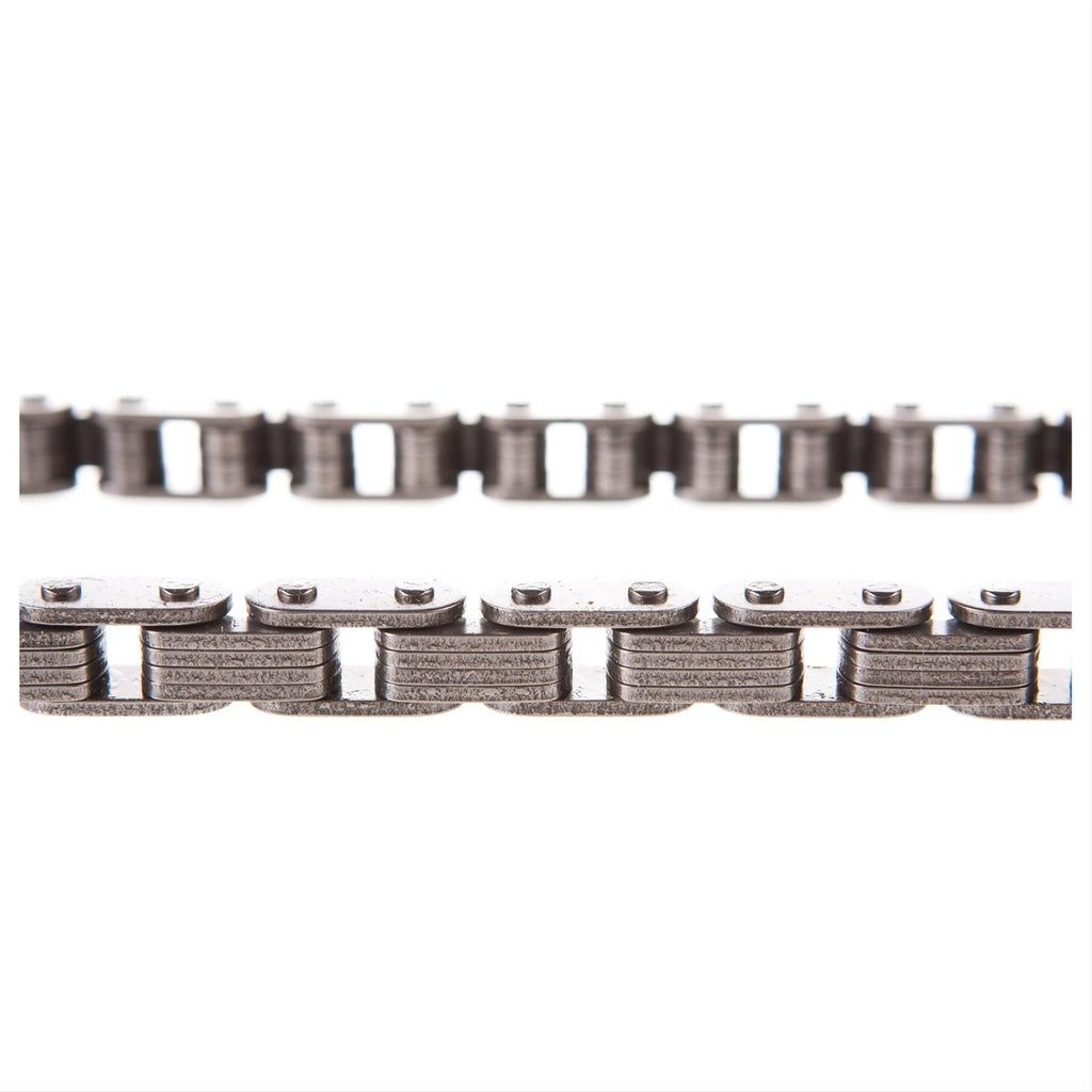 Melling replacement timing chains are available in several styles—single or double roller, link belt, or non-roller—for fitment on countless year/make/model vehicles. A key link in your engine, timing chains synchronize and transfer energy from the crankshaft to the camshaft, controlling when the intake and exhaust valves open. These solid-bushing chains offer a true bearing surface that rolls with the sprockets, eliminating chain stretch. Order the replacement designed for your specific application.Brand: Melling