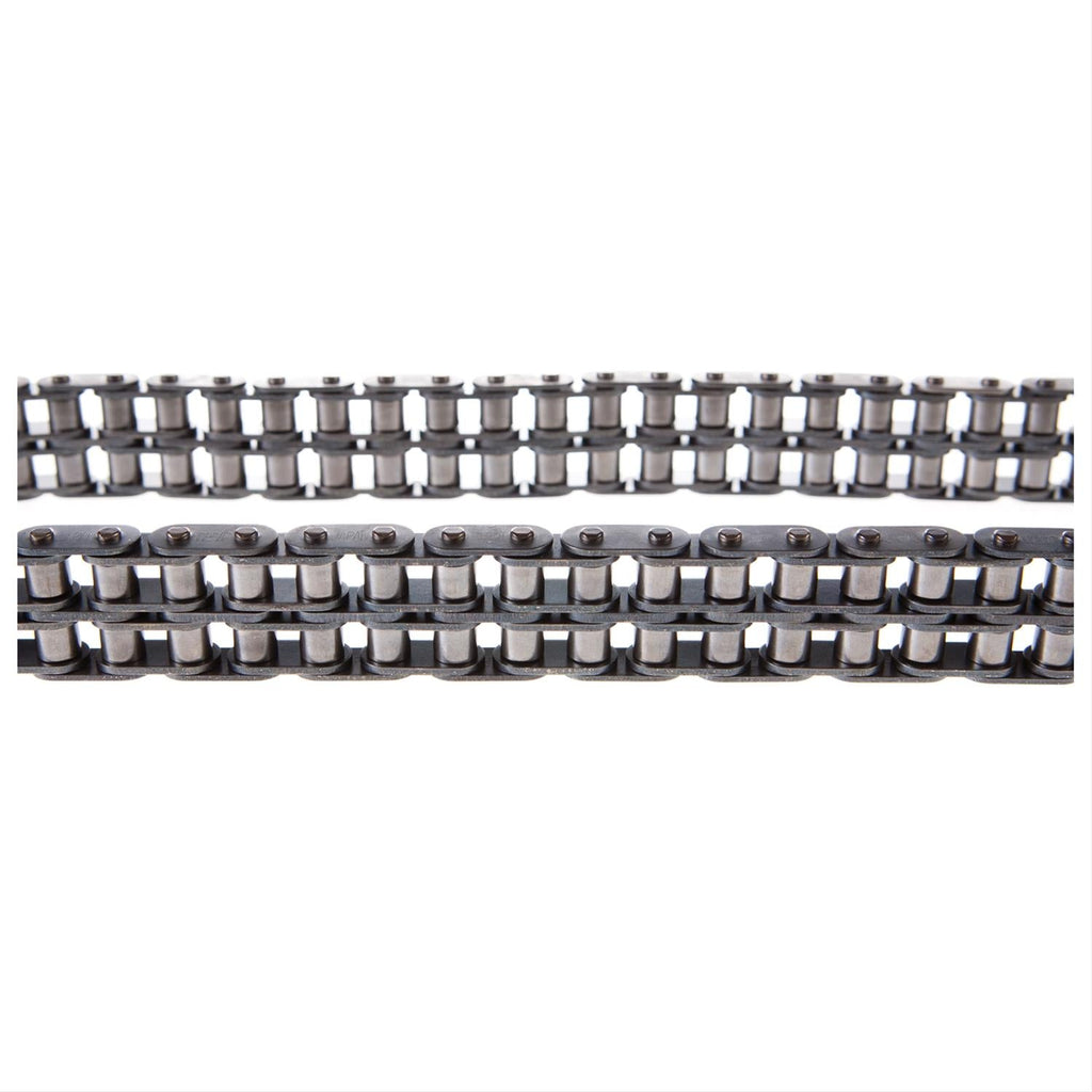 Melling replacement timing chains are available in several styles—single or double roller, link belt, or non-roller—for fitment on countless year/make/model vehicles. A key link in your engine, timing chains synchronize and transfer energy from the crankshaft to the camshaft, controlling when the intake and exhaust valves open. These solid-bushing chains offer a true bearing surface that rolls with the sprockets, eliminating chain stretch. Order the replacement designed for your specific application.Brand: Melling