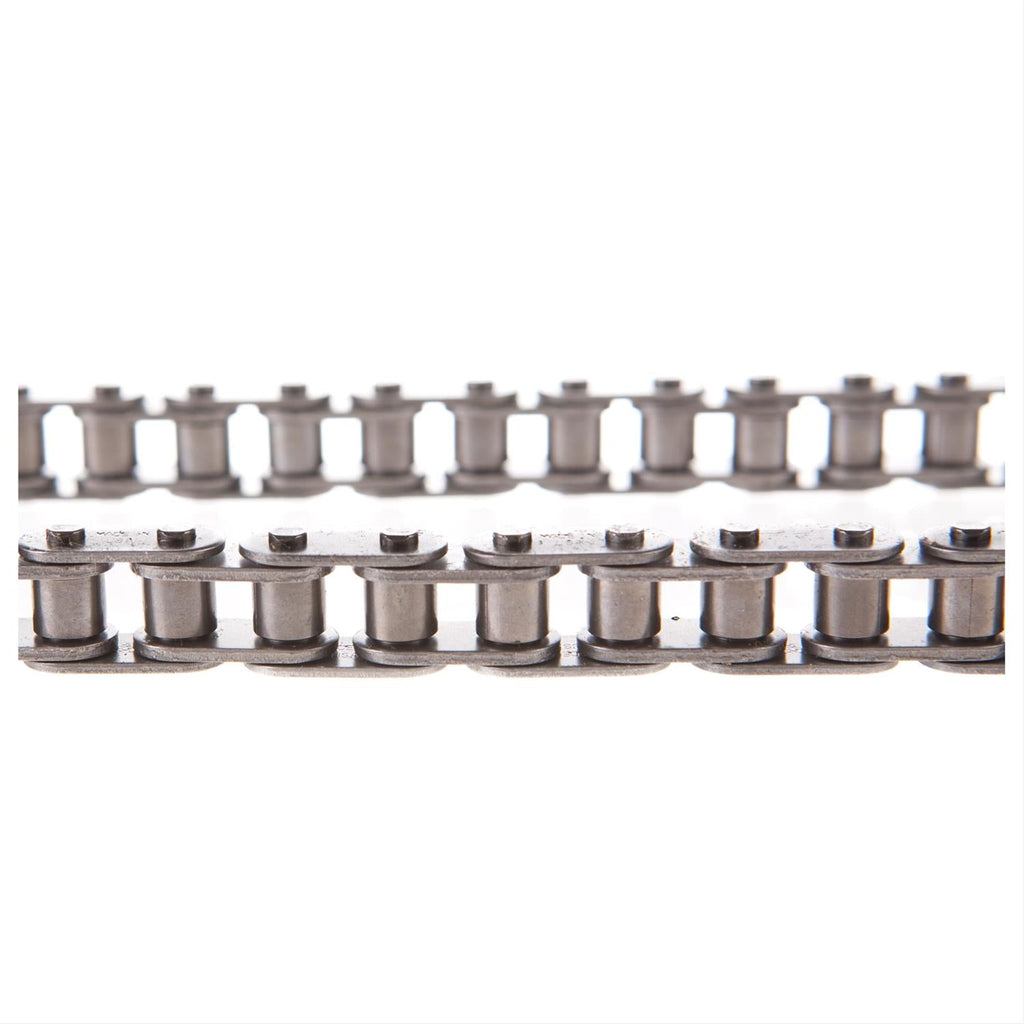Melling replacement timing chains are available in several styles—single or double roller, link belt, or non-roller—for fitment on countless year/make/model vehicles. A key link in your engine, timing chains synchronize and transfer energy from the crankshaft to the camshaft, controlling when the intake and exhaust valves open. These solid-bushing chains offer a true bearing surface that rolls with the sprockets, eliminating chain stretch. Order the replacement designed for your specific application.Brand: Melling