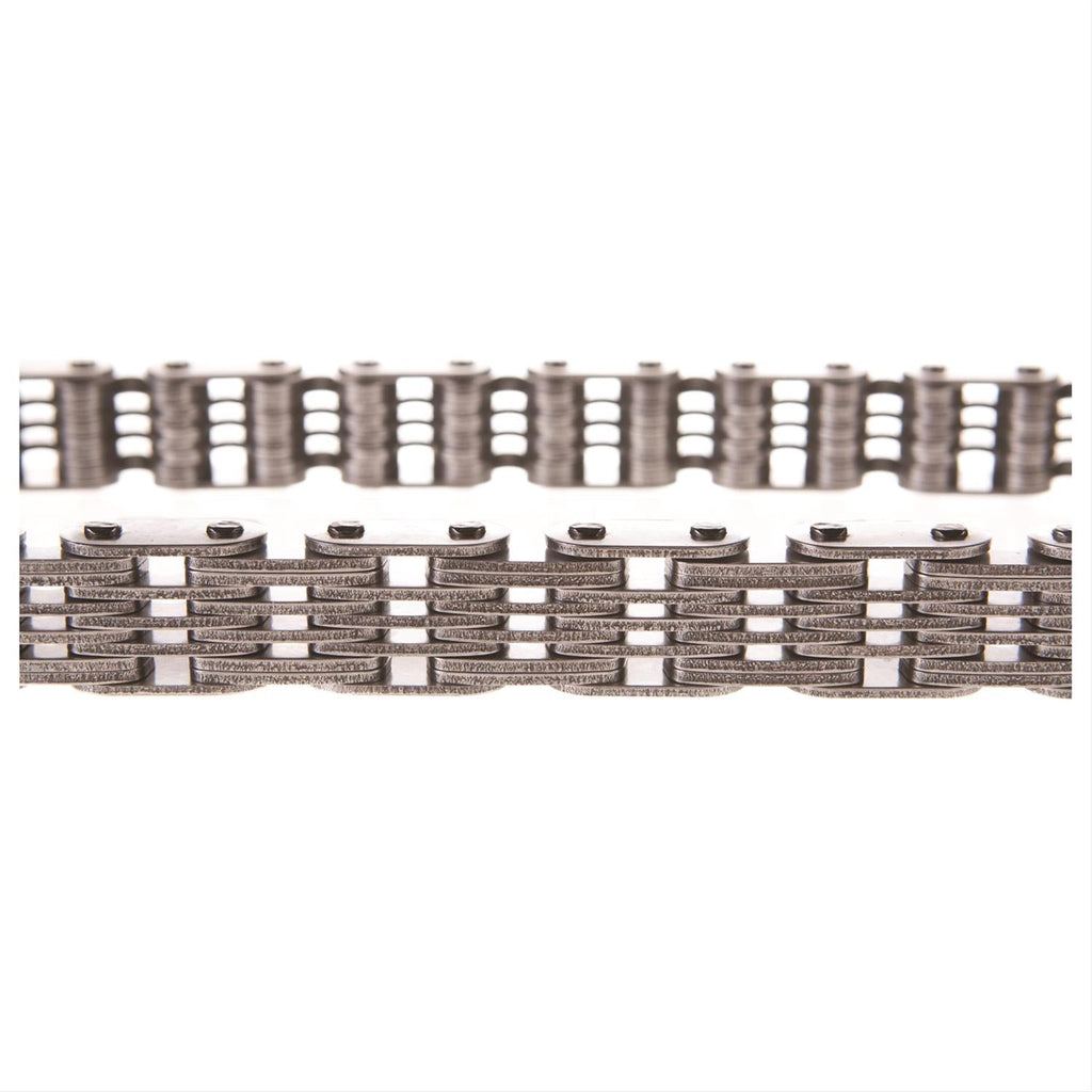 Melling replacement timing chains are available in several styles—single or double roller, link belt, or non-roller—for fitment on countless year/make/model vehicles. A key link in your engine, timing chains synchronize and transfer energy from the crankshaft to the camshaft, controlling when the intake and exhaust valves open. These solid-bushing chains offer a true bearing surface that rolls with the sprockets, eliminating chain stretch. Order the replacement designed for your specific application.Brand: Melling