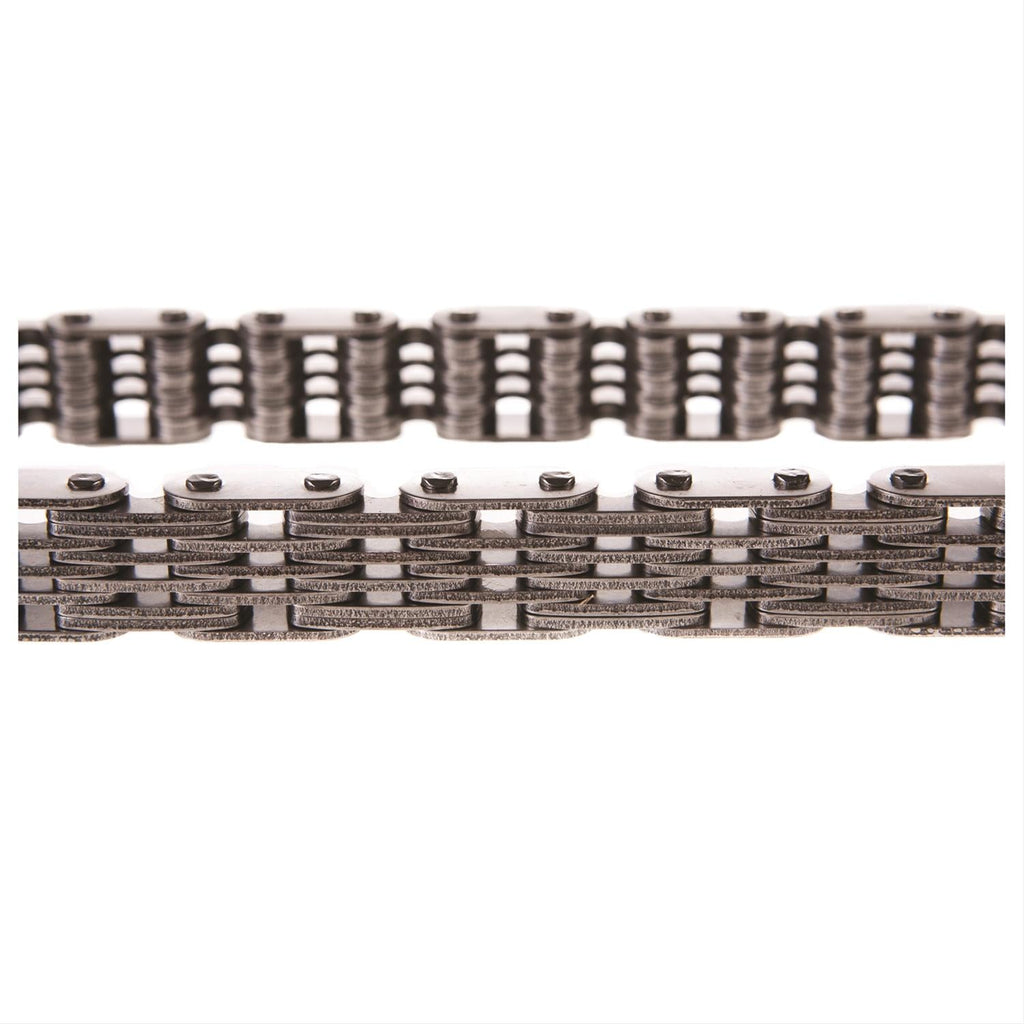 Melling replacement timing chains are available in several styles—single or double roller, link belt, or non-roller—for fitment on countless year/make/model vehicles. A key link in your engine, timing chains synchronize and transfer energy from the crankshaft to the camshaft, controlling when the intake and exhaust valves open. These solid-bushing chains offer a true bearing surface that rolls with the sprockets, eliminating chain stretch. Order the replacement designed for your specific application.Brand: Melling
