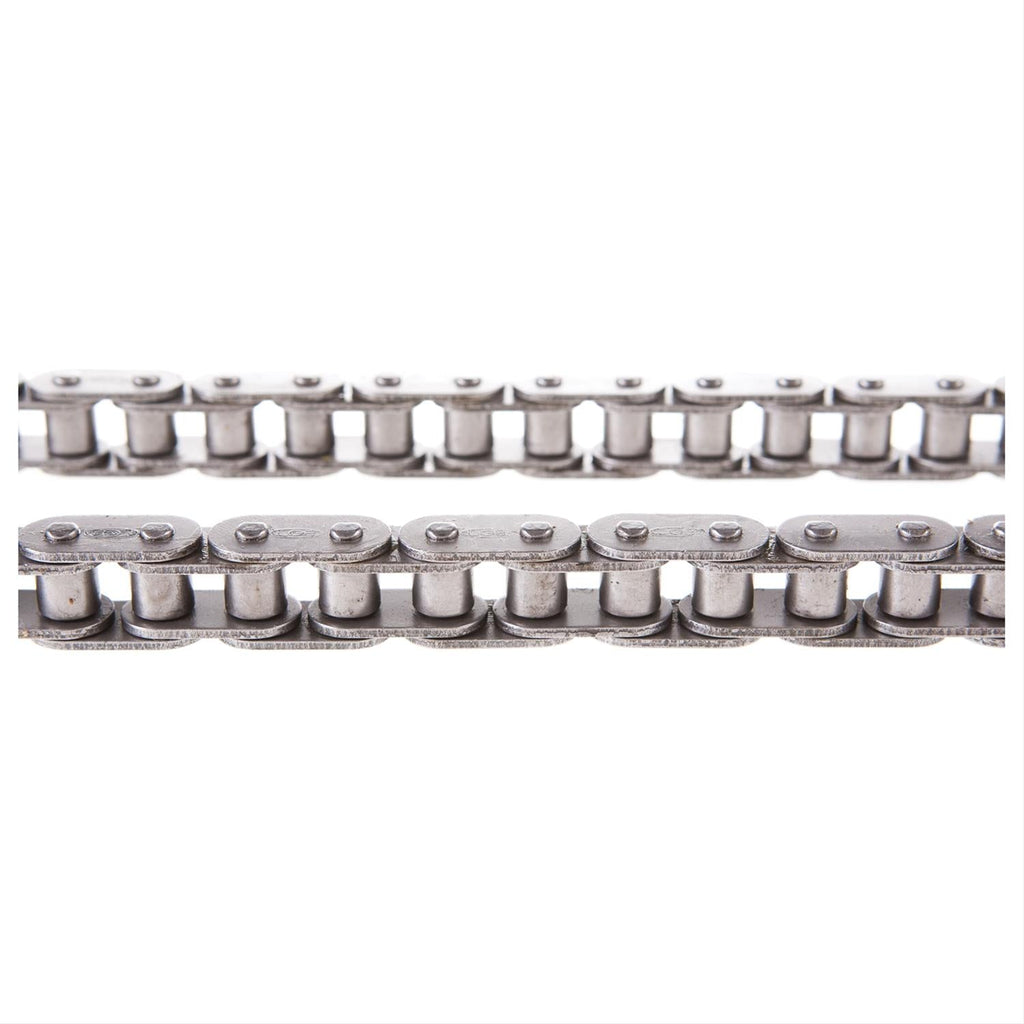 Melling replacement timing chains are available in several styles—single or double roller, link belt, or non-roller—for fitment on countless year/make/model vehicles. A key link in your engine, timing chains synchronize and transfer energy from the crankshaft to the camshaft, controlling when the intake and exhaust valves open. These solid-bushing chains offer a true bearing surface that rolls with the sprockets, eliminating chain stretch. Order the replacement designed for your specific application.Brand: Melling