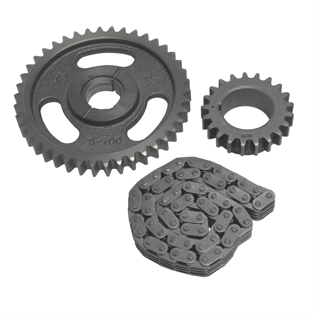 Melling timing chain sets are designed for use with either performance or stock cams. They have a solid-bushing chain for a true bearing surface that rolls with the sprockets, eliminating chain stretch. The crank gears are machined from stress-proof steel. Most Melling timing chain sets have three keyways to ensure accurate timing for early or late model vehicles, and to allow you to set the cam timing at 4 degrees advanced, 4 degrees retarded, or stock. However, 50-state (stock replacement) sets have single keyways. The chains are available in several styles, such as single or double roller, single non-roller, and link belt. Melling timing chain sets are not for use above 6,500 rpm. Order the model designed for your vehicle application.Brand: Melling