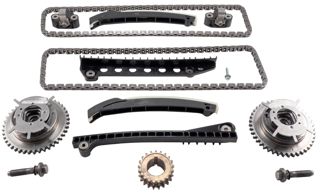 Melling timing chain sets are designed for use with either performance or stock cams. They have a solid-bushing chain for a true bearing surface that rolls with the sprockets, eliminating chain stretch. The crank gears are machined from stress-proof steel. Most Melling timing chain sets have three keyways to ensure accurate timing for early or late model vehicles, and to allow you to set the cam timing at 4 degrees advanced, 4 degrees retarded, or stock. However, 50-state (stock replacement) sets have single keyways. The chains are available in several styles, such as single or double roller, single non-roller, and link belt. Melling timing chain sets are not for use above 6,500 rpm. Order the model designed for your vehicle application.Brand: Melling