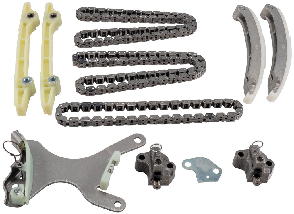 Melling timing chain sets are designed for use with either performance or stock cams. They have a solid-bushing chain for a true bearing surface that rolls with the sprockets, eliminating chain stretch. The crank gears are machined from stress-proof steel. Most Melling timing chain sets have three keyways to ensure accurate timing for early or late model vehicles, and to allow you to set the cam timing at 4 degrees advanced, 4 degrees retarded, or stock. However, 50-state (stock replacement) sets have single keyways. The chains are available in several styles, such as single or double roller, single non-roller, and link belt. Melling timing chain sets are not for use above 6,500 rpm. Order the model designed for your vehicle application.Brand: Melling
