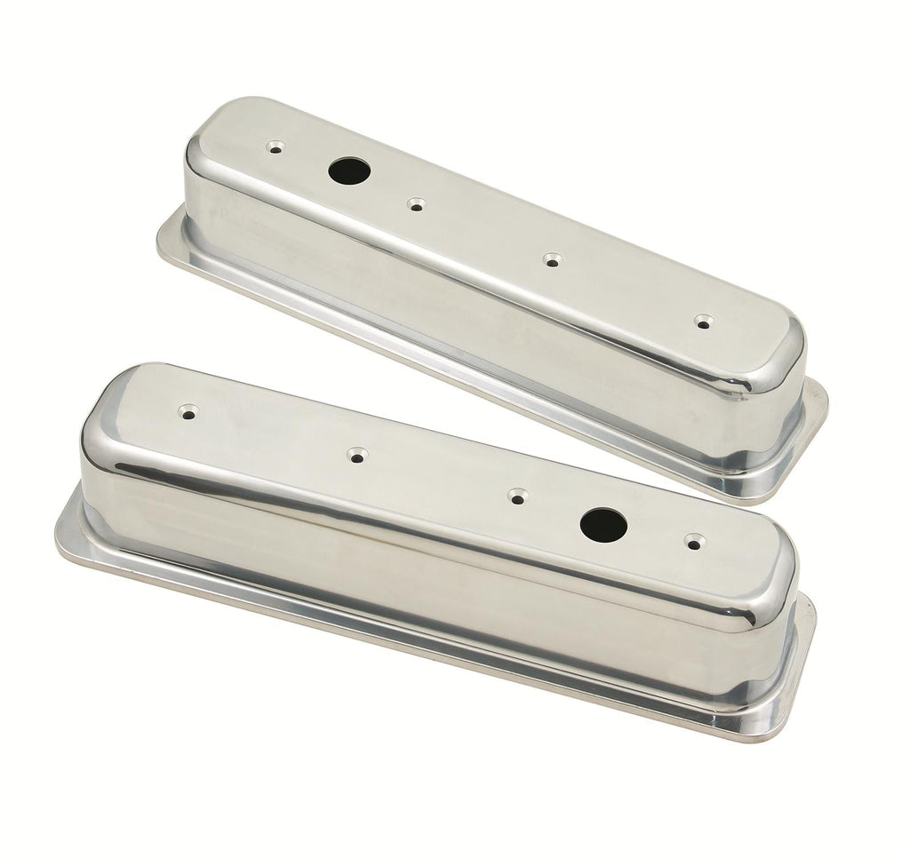 Mr. Gasket aluminum valve covers are fabricated from 100 percent TIG-welded 6061 T-5 aluminum sheeting for a perfect lightweight fit. Available in natural, polished, powdercoat, or anodized finishes, they'll enhance the appearance of any engine compartment. The covers feature an extended sealing lip to positively locate and secure the gasket from moving, eliminating oil leaks. These valve covers can be ordered with plain or finned tops, and each piece includes a 1 1/4 in. diameter breather hole (except where noted). Order the model designed for fitment on your make/model and engine type.Brand: Mr. Gasket