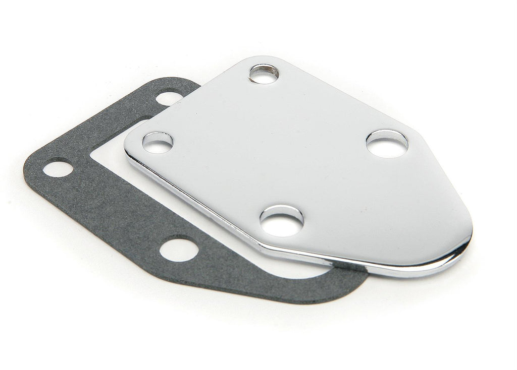 These fuel pump block-off plates cover the opening left when you convert from a mechanical to an electric fuel pump. They're made from precision-cut steel that's highly polished and chrome plated. Gaskets are included.Brand: Mr. Gasket